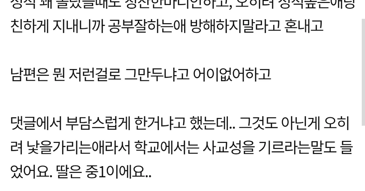 [네이트판] 중학생딸이 학원 그만두고싶다고 우는 이유 ,,